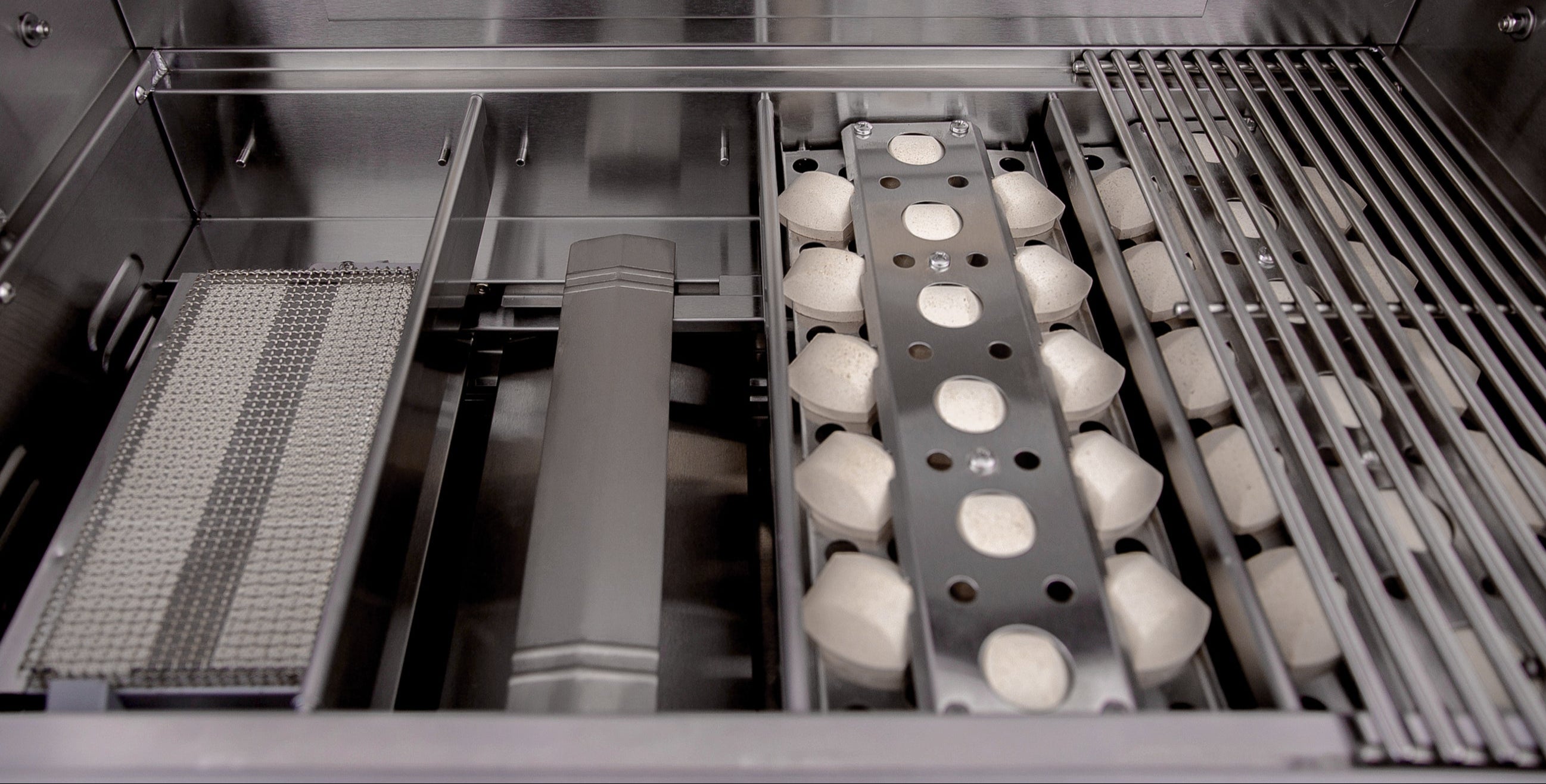 - Engineered for Precision: Cast stainless burners, ceramic briquettes, and heat zone separators ensure even heat and control.